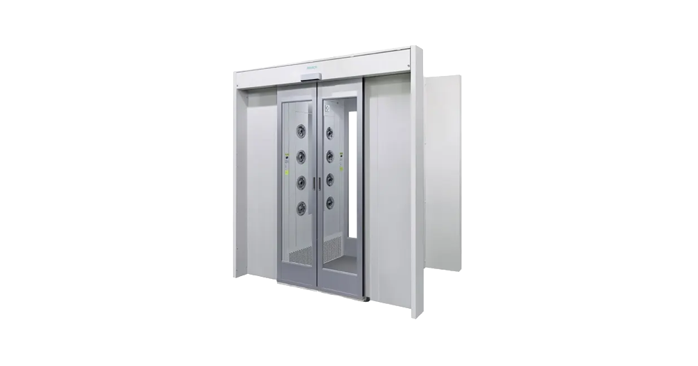 自動ドア付エアーシャワーは、作業者の衣服や持ち込み物に付着したほこりや微粒子を除去するためのクリーンルーム用エアーシャワーです。